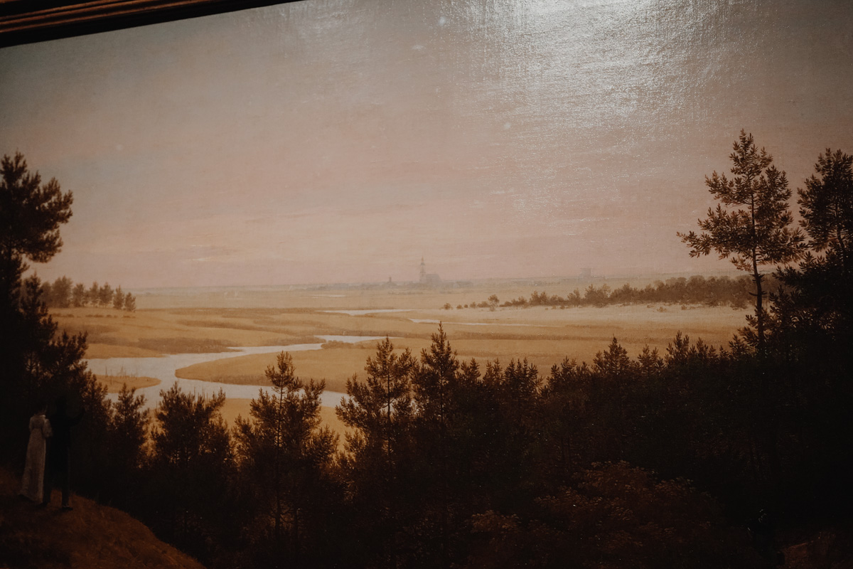 パッと見は普通の風景画。ですが、よく観ていると、手前の近景、川が流れる草原の中景、そして遠くに霞む街の遠景、と丁寧に描き分けられていることがわかります。構図のバランスも素晴らしい。さりげなく、緻密に成立させられていると感じました。建築家、舞台芸術家であったカール・グスタフ・カールスによる構成力なのかもしれません。