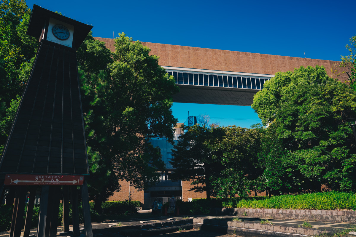 一瞬、?!!となりました。向こうに見えるのは、ロの字の珍しい建物、私立の高校のようです。