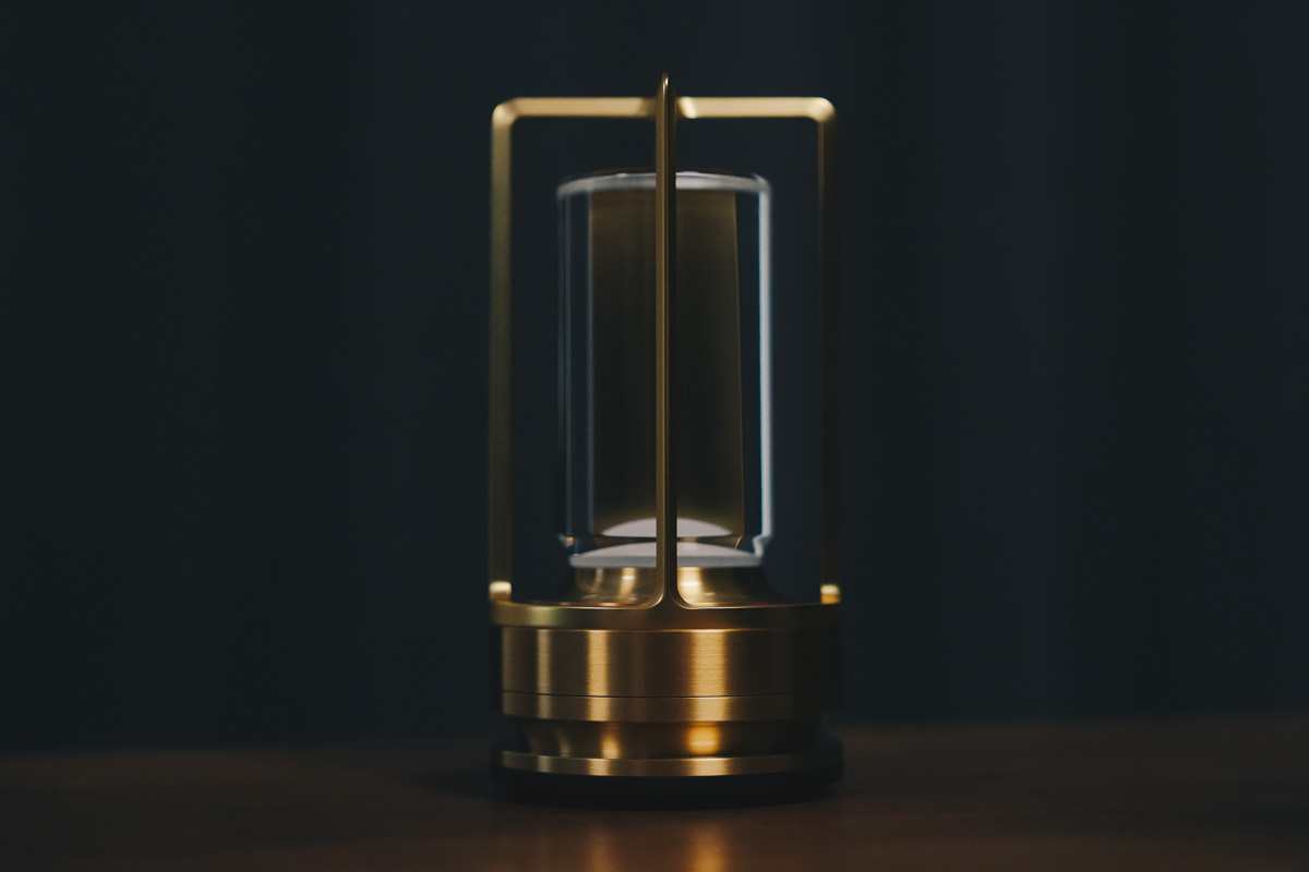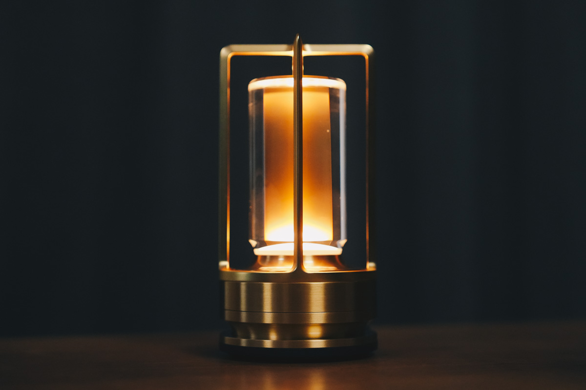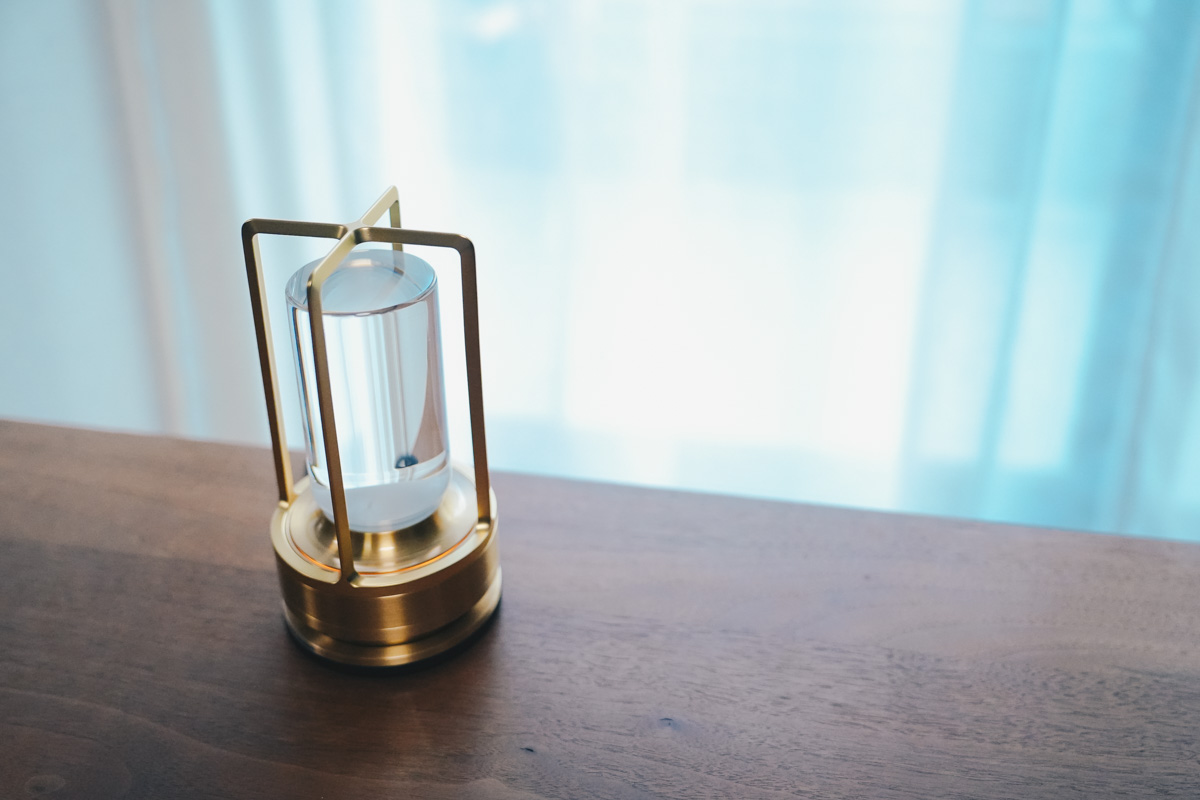バルミューダのランタンとはまた別の、重厚感がある雰囲気が出ます。金属による素材感、塊感が強く、芯のある控えめな主張されたデザインに感じます。