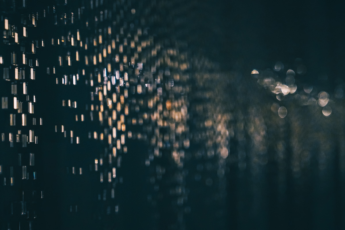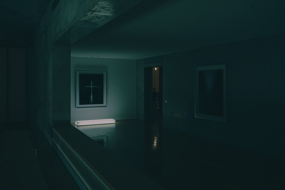 このエリアには、通常の建物にある天井照明がありません。作品の前のライトボックスが主な明るさの源。最初はよく見えませんでしたが、次第に暗闇に目が慣れてくると、黒の中のトーンがわかるようになり、何か奥深いものに接しているような、不思議な感覚を覚えました。