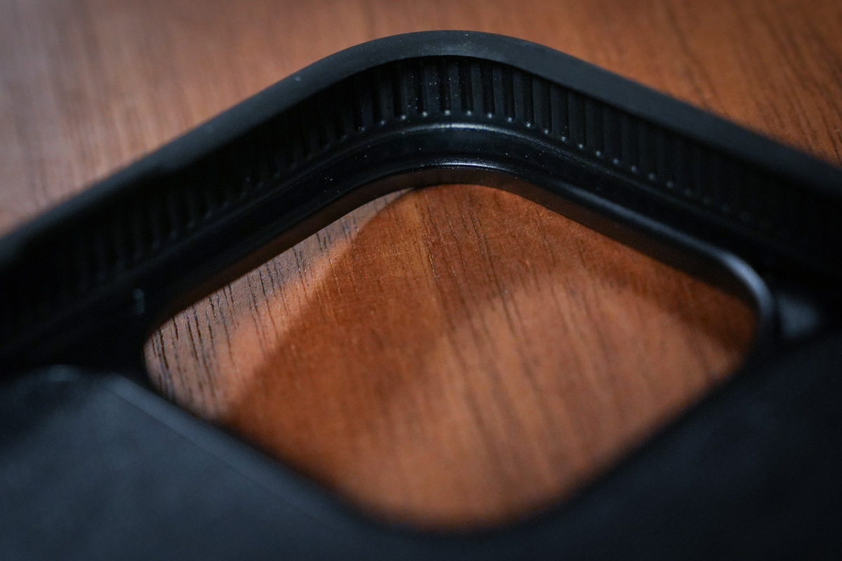 ↓側面の裏側には強度を上げるため?のスリットが入っています。フレームはTPU素材ということですが、TPUってなんだ?